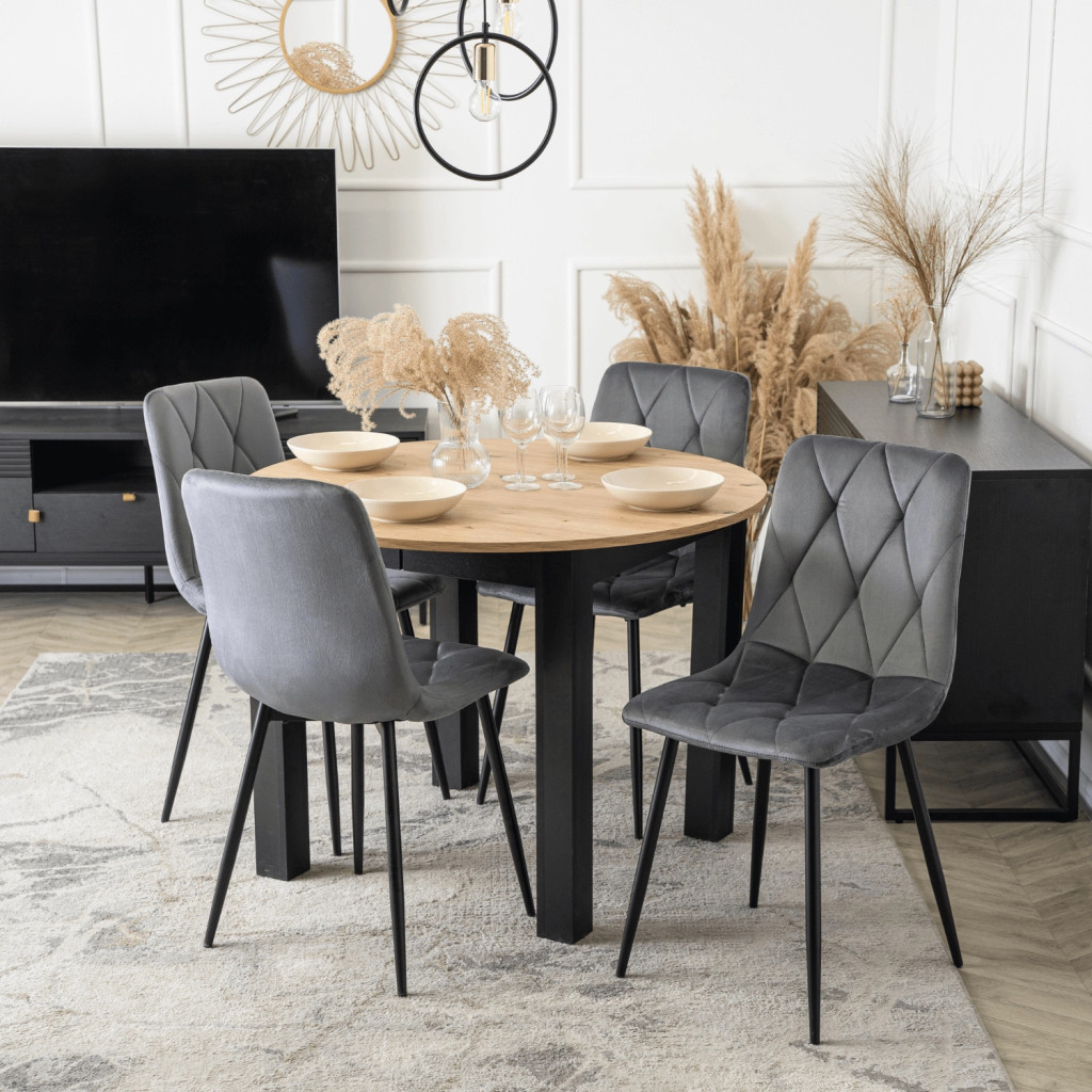 Bővíthető étkezőasztal 102–142 cm Artisan tölgy / fekete színkombinációban – HARRY
